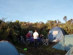 On the way to camp, we are definitely two distinct groups at all times. Kamal, Tamara, Tayma and Ronan are at the front by some margin, but they are all in their twenties. We nickname them “the tweens’. Caroline and Heather take it easy, and I am glad of it. The motto for walking slowly in Swahili is “Pole, Pole” – as far as I am concerned you cannot go slowly enough, so I ask Deo if we can go “Pole, pole, pole, pole, pole” – I am not sure he sees the joke, but we go even slower anyway, so that works for me.