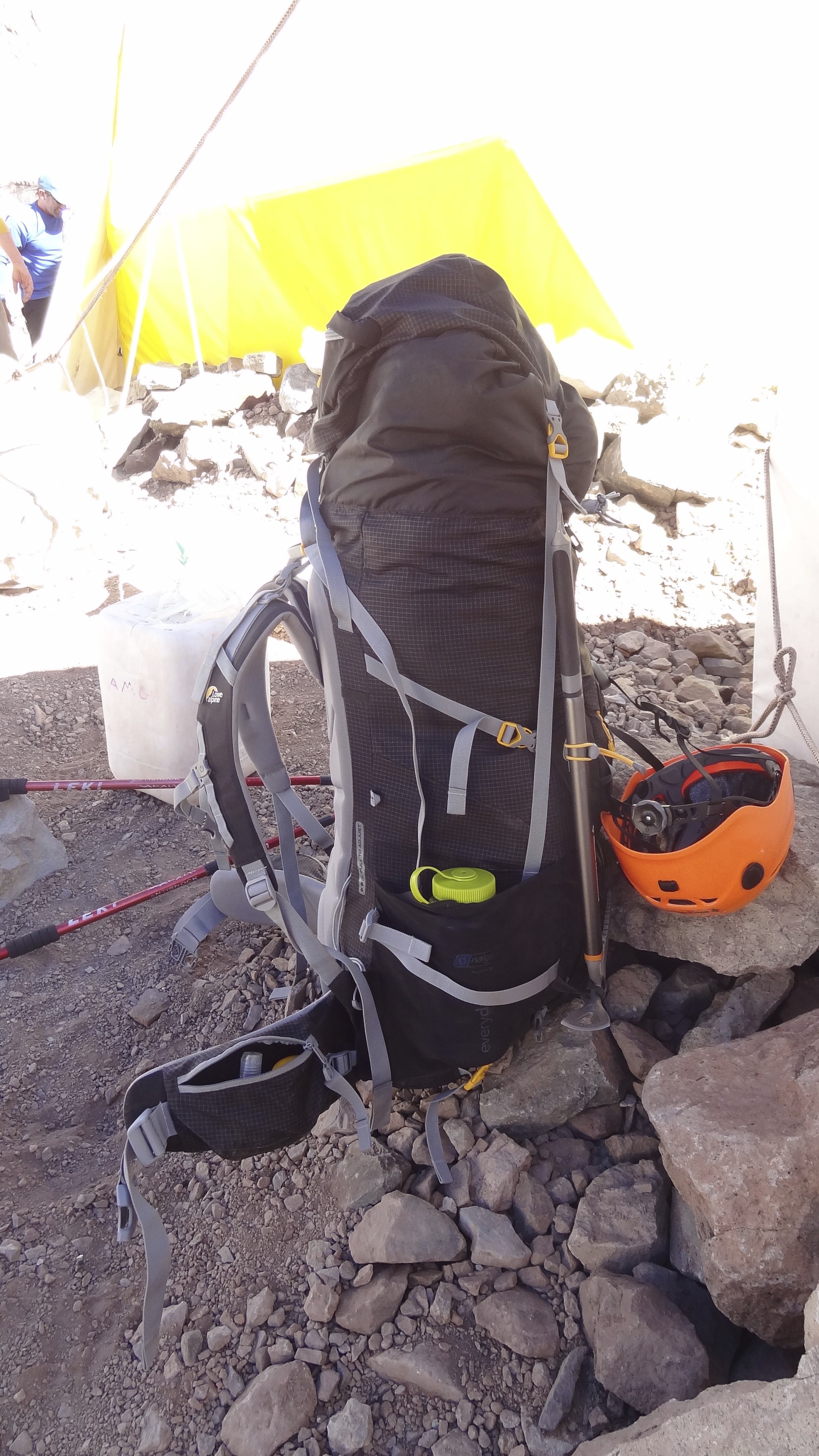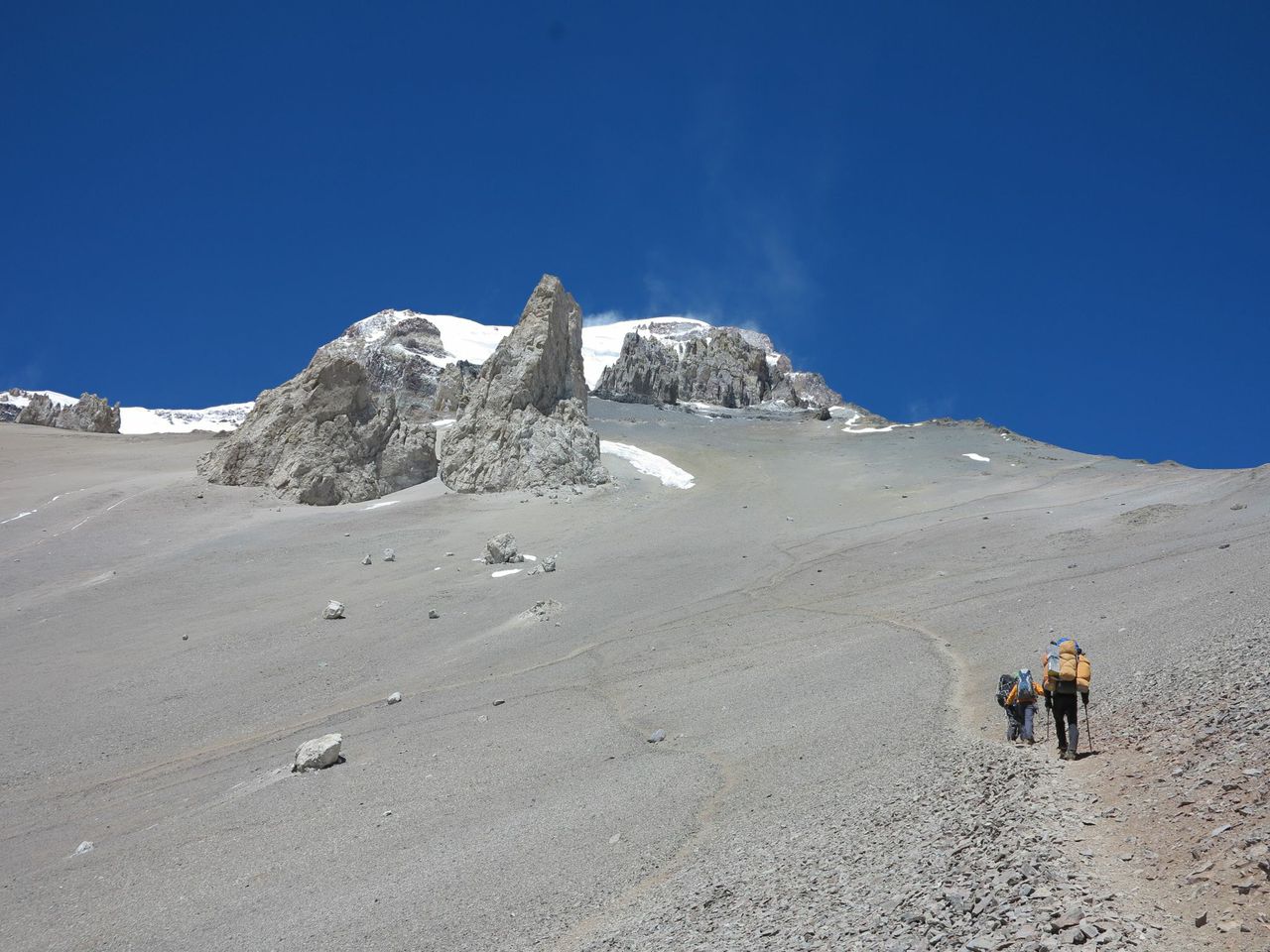 We had about 1,800 feet only of ascent to do, but in these conditions (and bearing in mind we were starting out at 16,400 feet) it was going to be a tough day. This was particularly the case as some of the ascent was up a scree slope, and we’d be carrying about 20kg or so on our backs.
