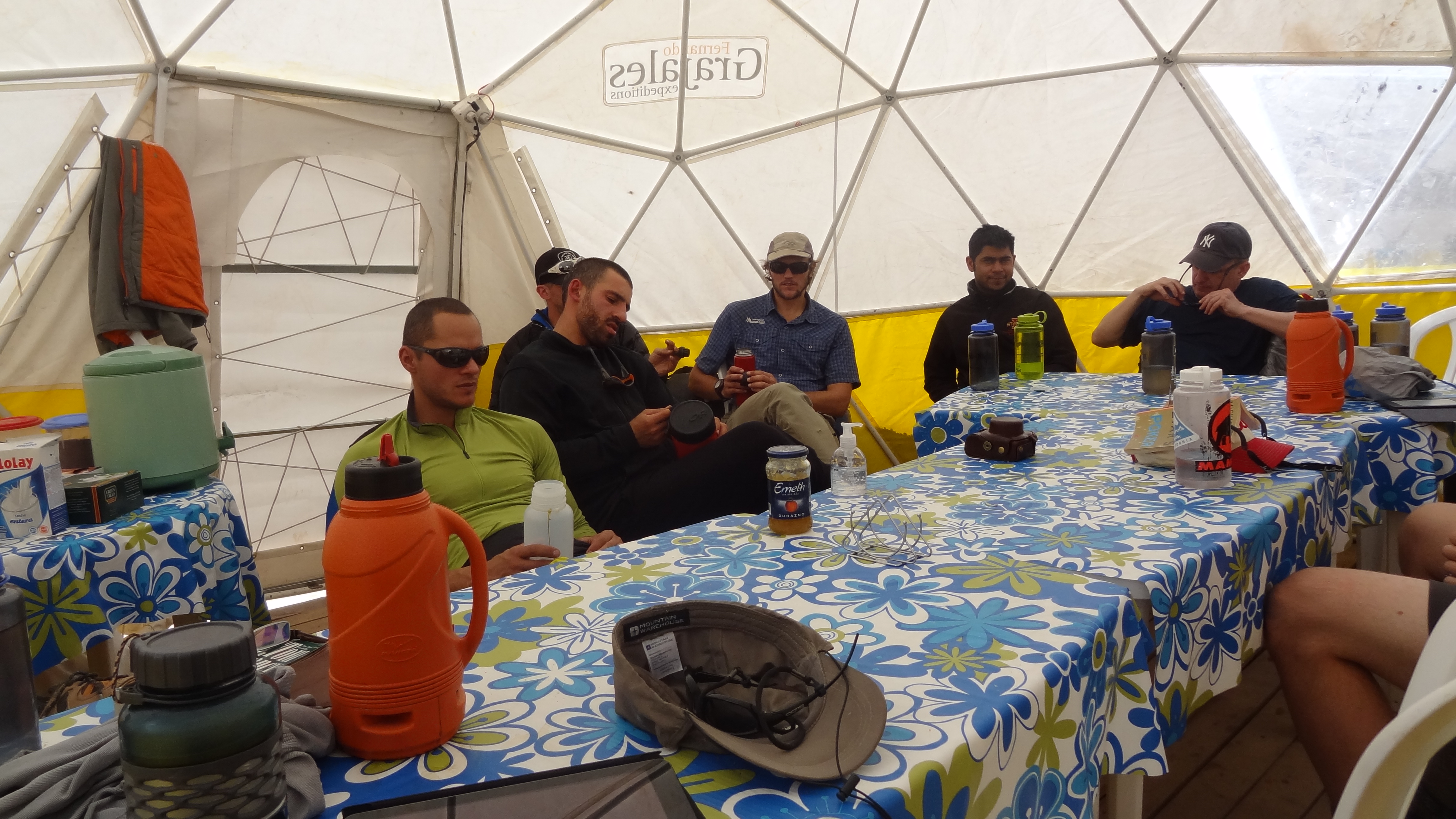 The weather continued to be shocking – the wind howling, and snow not falling, but beating on the tent in sideways and sometimes upwards swirls. Down jackets, long johns and woolly hats remained firmly on, even inside.