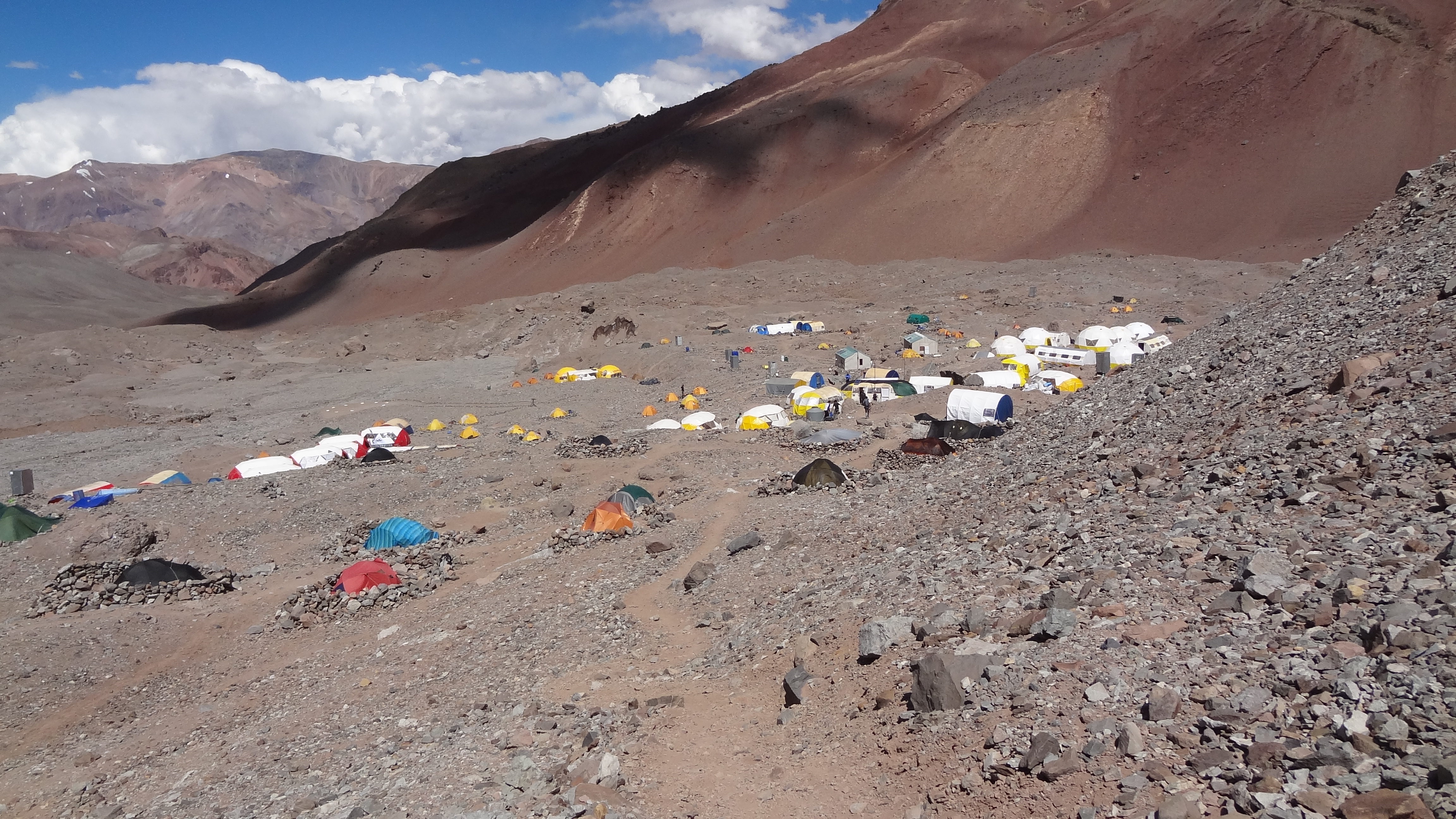 So here is a view from Camp 2 looking northwards over the Andes – the mountains facing us are just under 6,000m in height.