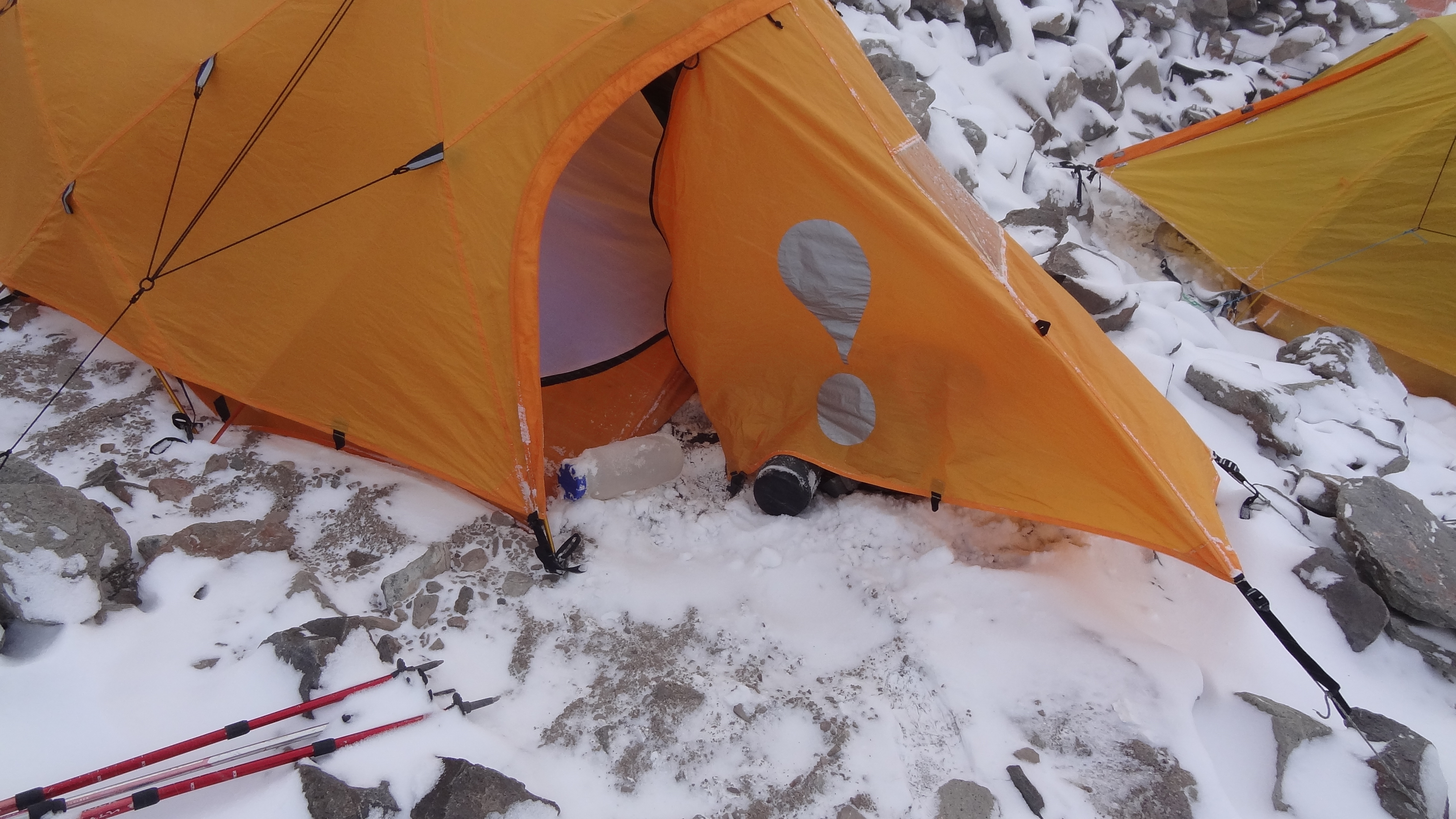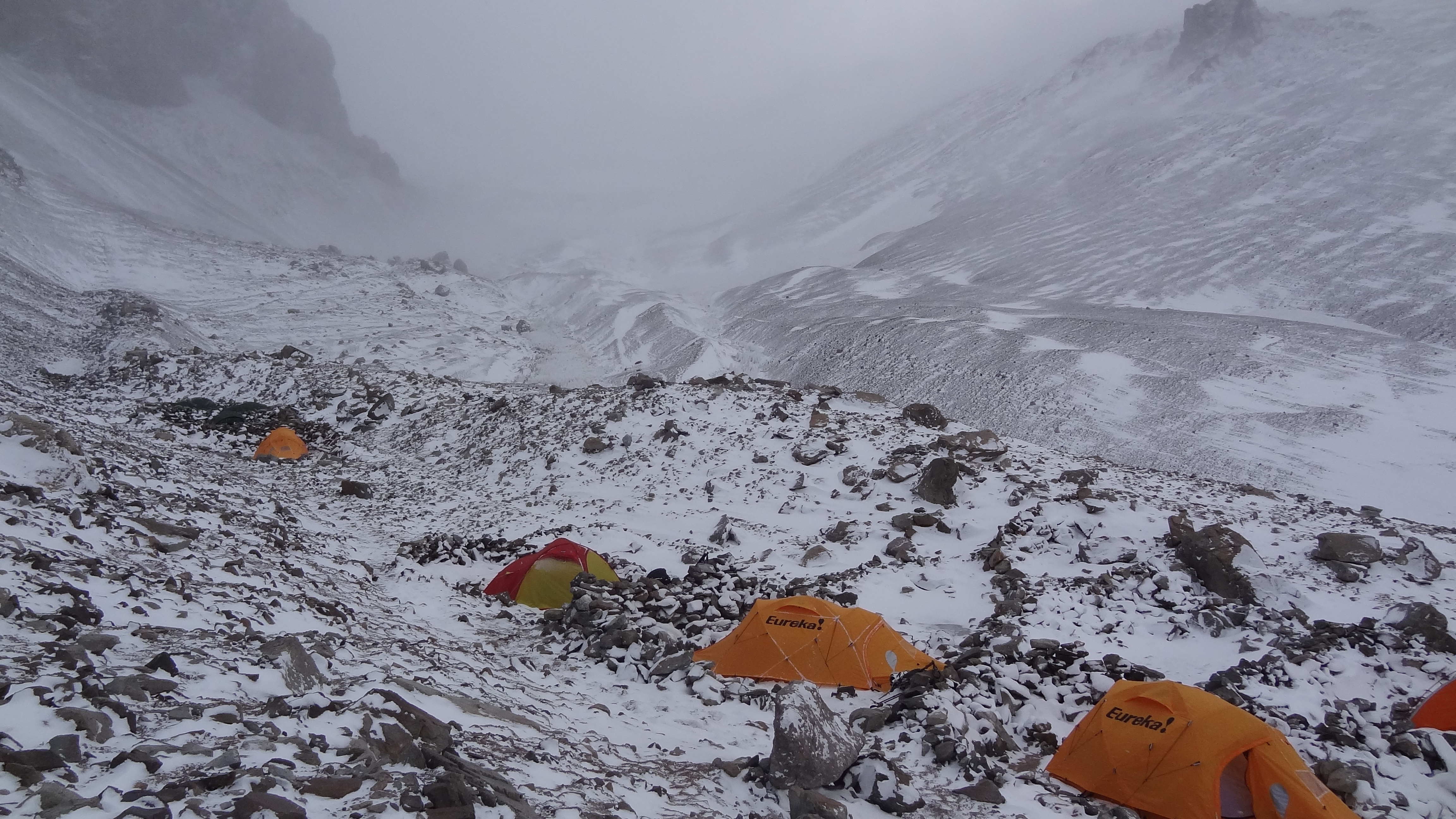 Today is New Year’s Eve, and just like Christmas Day, it would be spent in a tent on a very windy mountain. For those of you who wonder, yes I do question at times why I do this. I could for example be sat somewhere warm and pub-like with friends, music playing, a nice bottle or two of wine, and some end of year festivities. Instead it is -10 outside, snowing, there is a 60mph or so wind blowing, and I am holding onto a tent in case it blows 8,000 feet down below me down the mountainside. Oh, and I have a headache, not through any festive reasons, but because I have mild altitude sickness. Happy New Year!