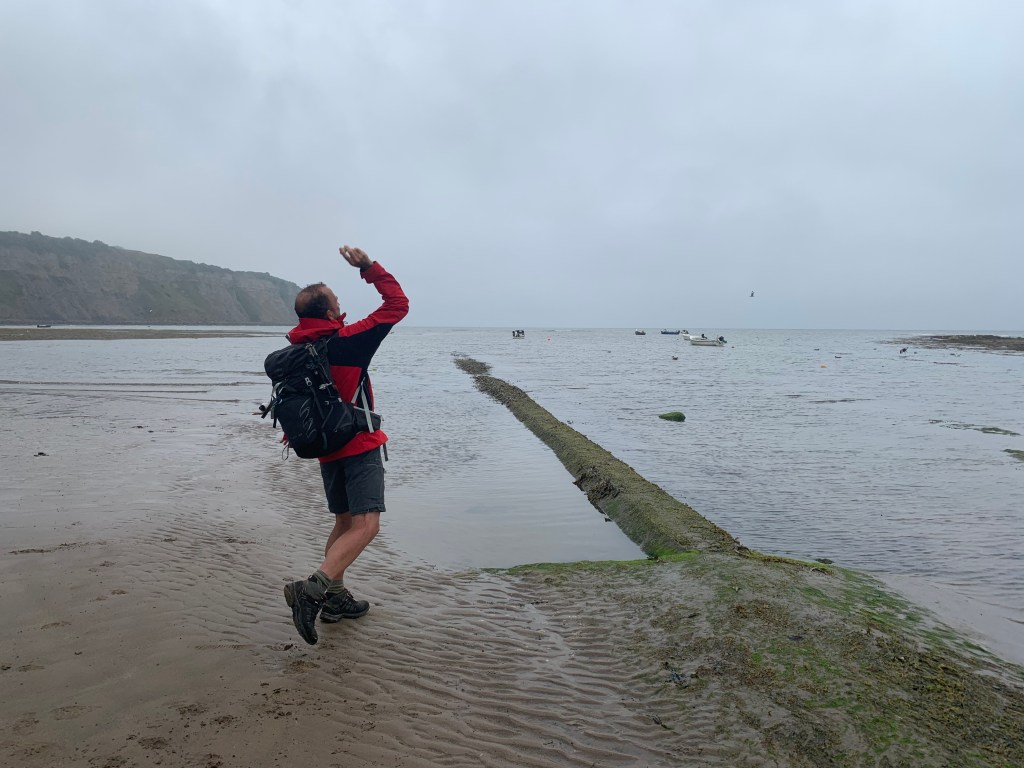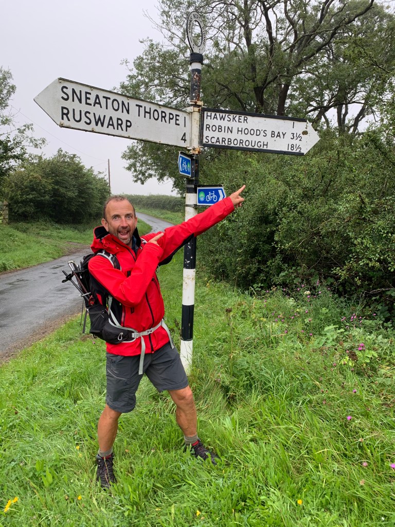 And so it had arrived! We were finally ready to do the final day of our adventure, and what an adventure it had been. Just 19 miles lay before us until we got to throw our pebbles that we had carried for 177 miles so far into the North Sea at Robin Hood’s Bay. Meantime it was time to put the waterproofs on for one final time, as the weather it seems wasn’t going to let us see the sea until we got to dip our toes in it, but that was ok.