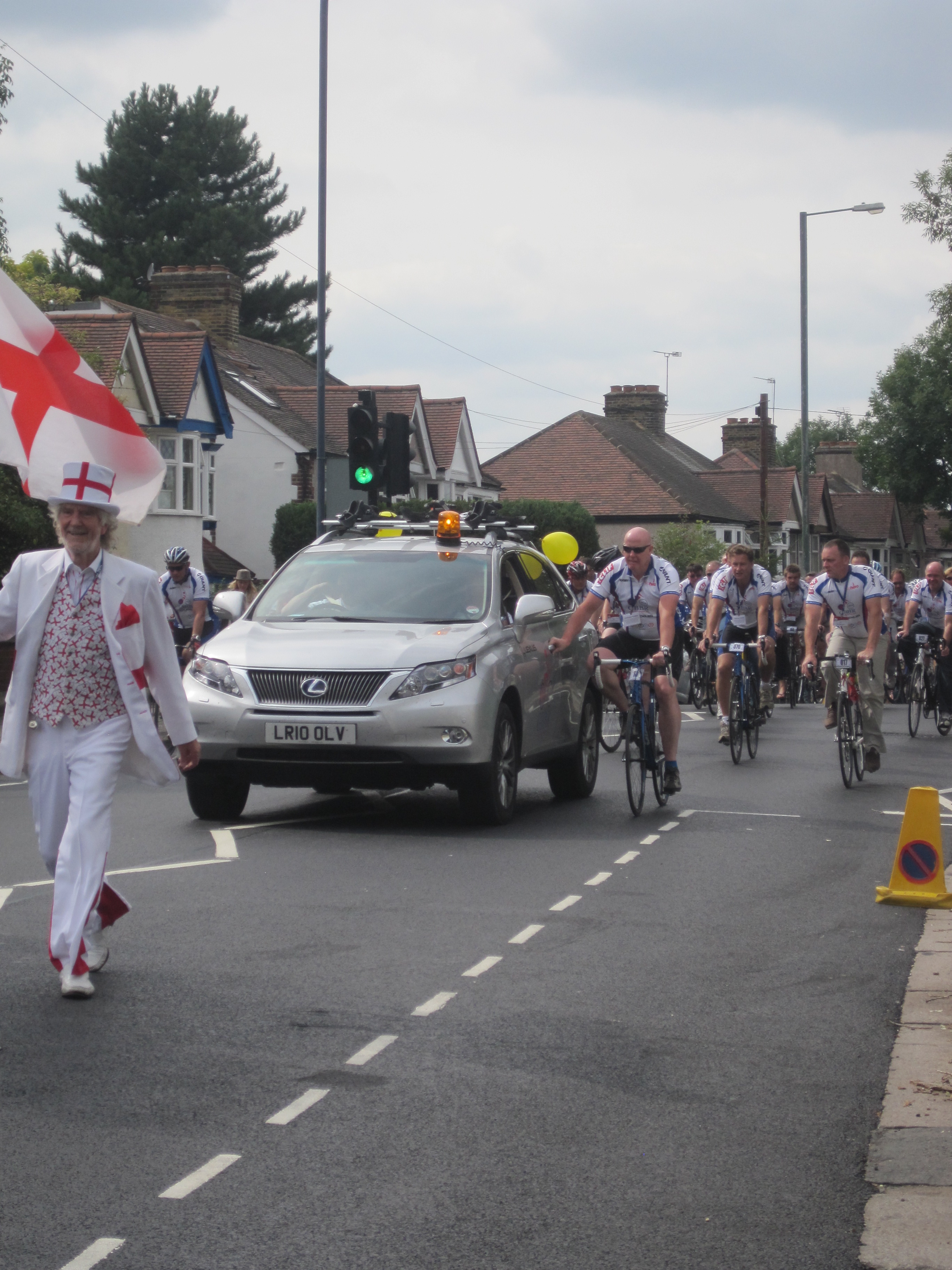 It was not long before I caught up and passed a lot of people. There were quite a few sets of fresh legs out there -“glory hunters” as Barry had called them in his speech the previous evening, as they would later that day get to walk into Twickenham with the rest of us who had done the whole 340 miles. This didn’t bother me at all, it was nice to have some extra people to ride with, and in some cases to get me fired up and motivated alongside. One group of about five I clung onto for about 8 miles and we went at a great pace – they stopped for a rest eventually and I just powered on – by now I was eating up time and ground. I was no longer thinking about how late I would be arriving, but just how close to the actual front of the field I could actually get. This was never a race, but believe me it got very very competitive out there for some people. I am not in their league, but it is nice to be able to aspire to their standards and be able to push yourself that bit harder because of it.