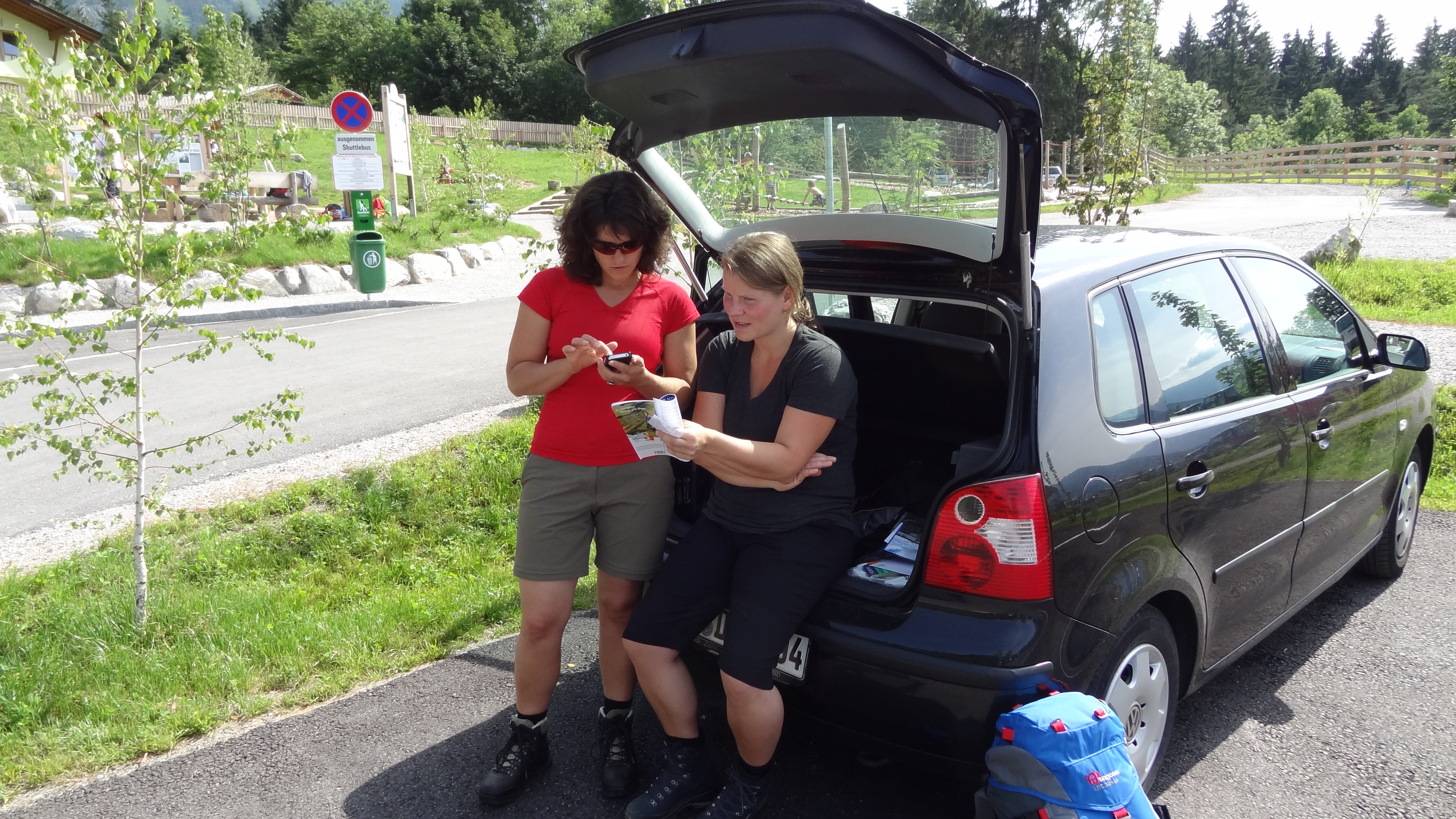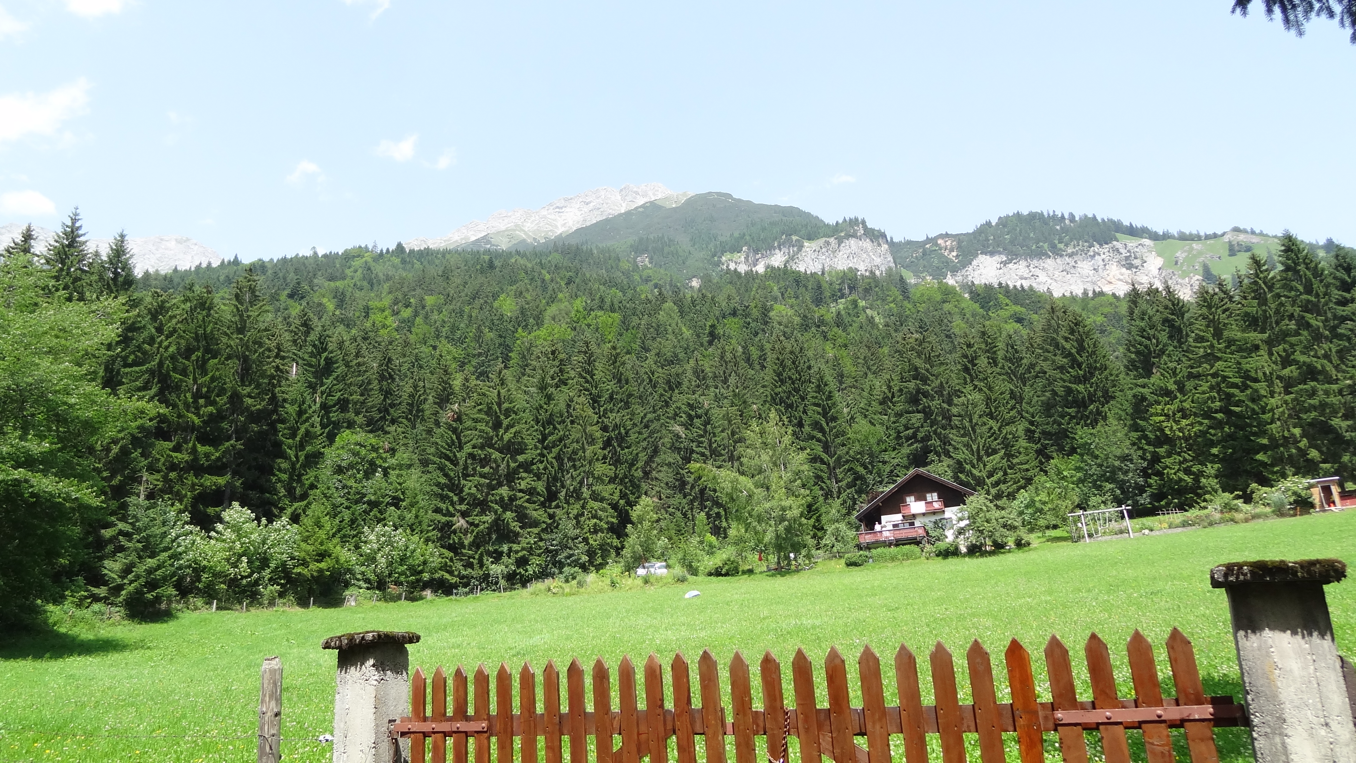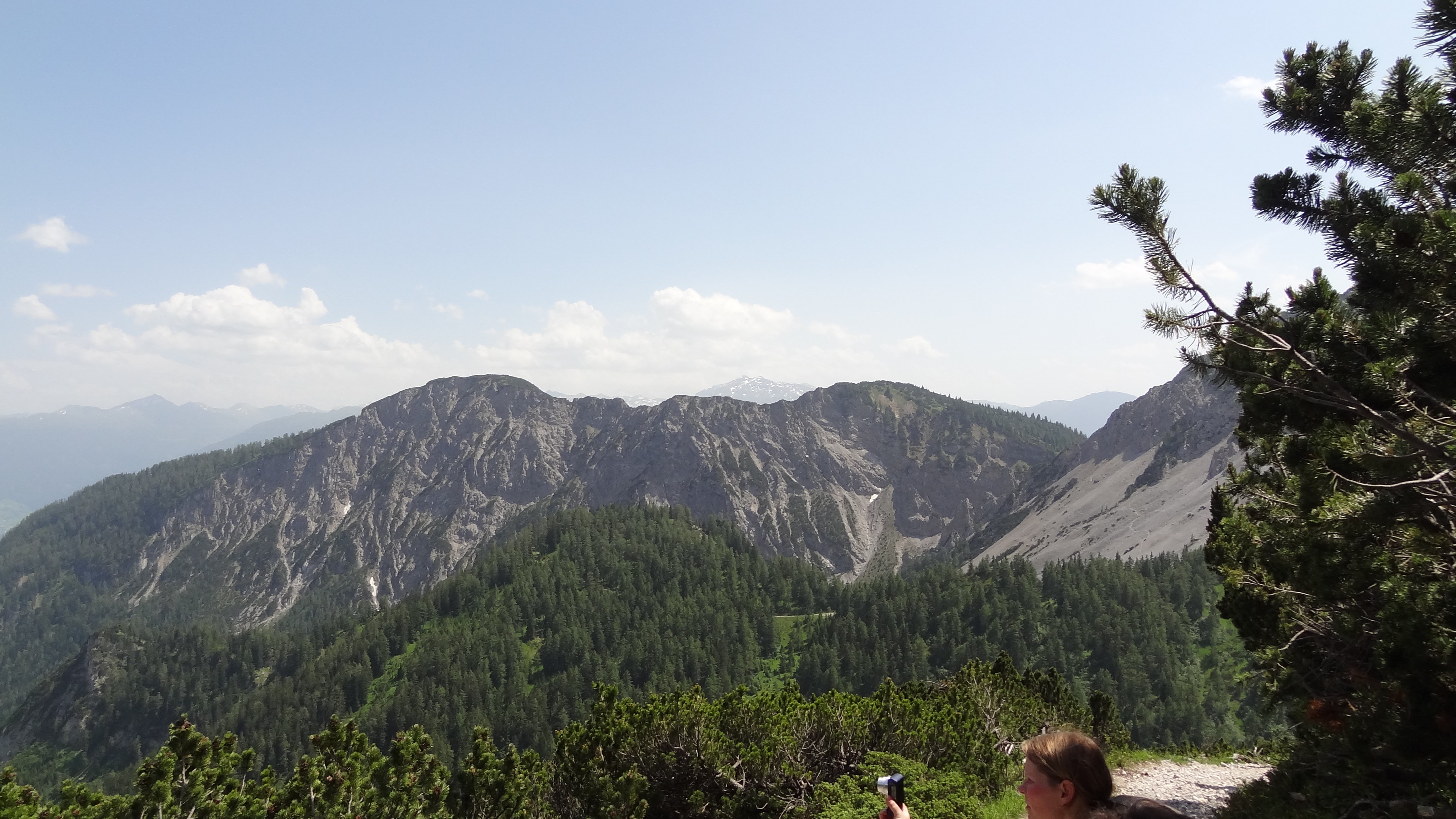 By the time we reached the very bottom, where we would get a bus back to Absam (where we had parked the car three days before), we could see back up the mountain to the top of where we had descended from: