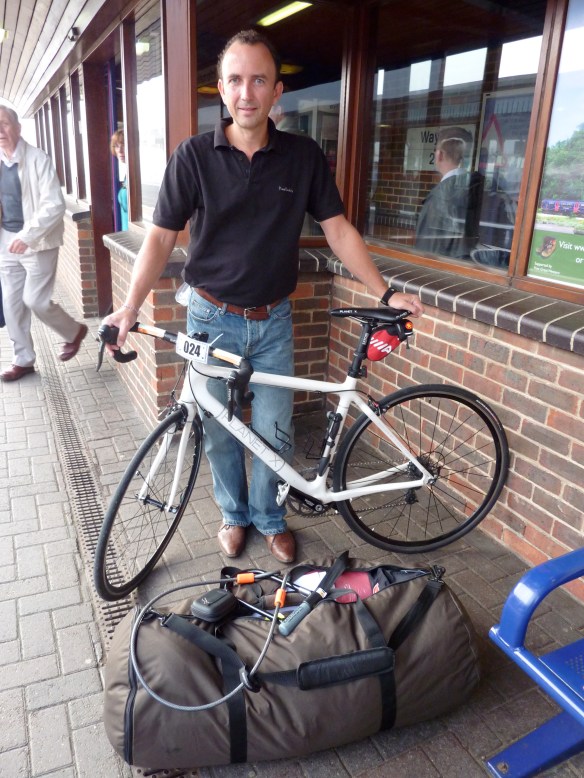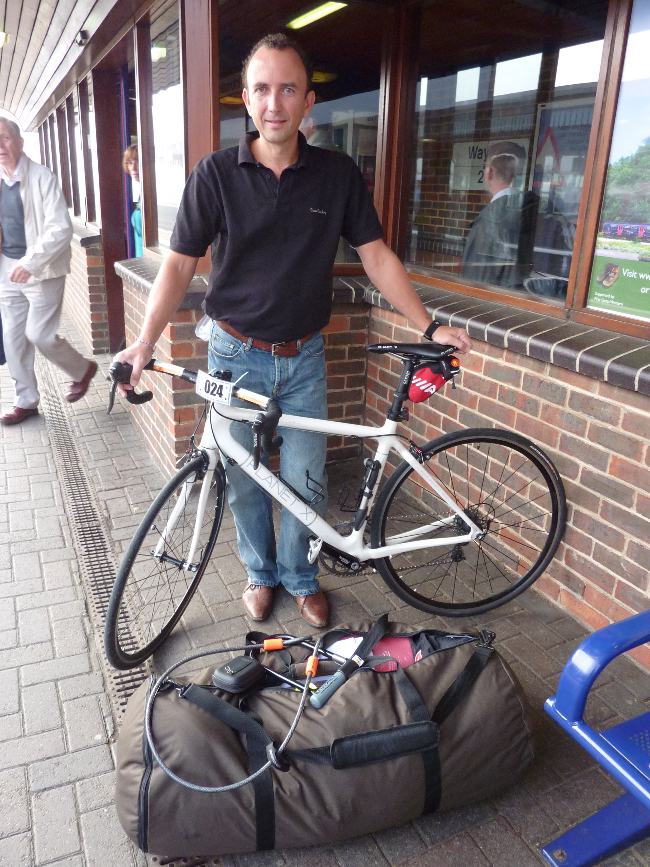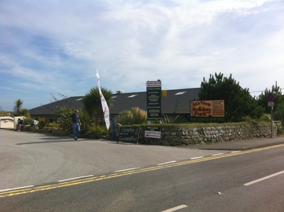 Some of the hills going up were so steep that my lack of triple chainring was apparent immediately. I reckon that 90% of people on the ride had a triple, and all of the experienced guys certainly had them. I was stupid, just didn’t know, and paid for it. You cannot do 25% slopes on a double, or I can’t anyway. In fact if I hadn’t had the 11-28 cassette fitted to my bike the week before I went I would have been walking half of the hills in Cornwall, and would probably still be there. I am glad to say that this was my only regret of the whole trip, but it was a significant one certainly. By the first pit stop however at 25 miles or so, I was flying along, and loving it. I think I knew that I was ready for the whole thing, as I was psyched up and determined. The other thing is that you are certainly carried along by the momentum, of riding with 150 people or so – there was always someone behind you or in front of you to keep you spurred on. Here I was at the first pit stop – still smiling!